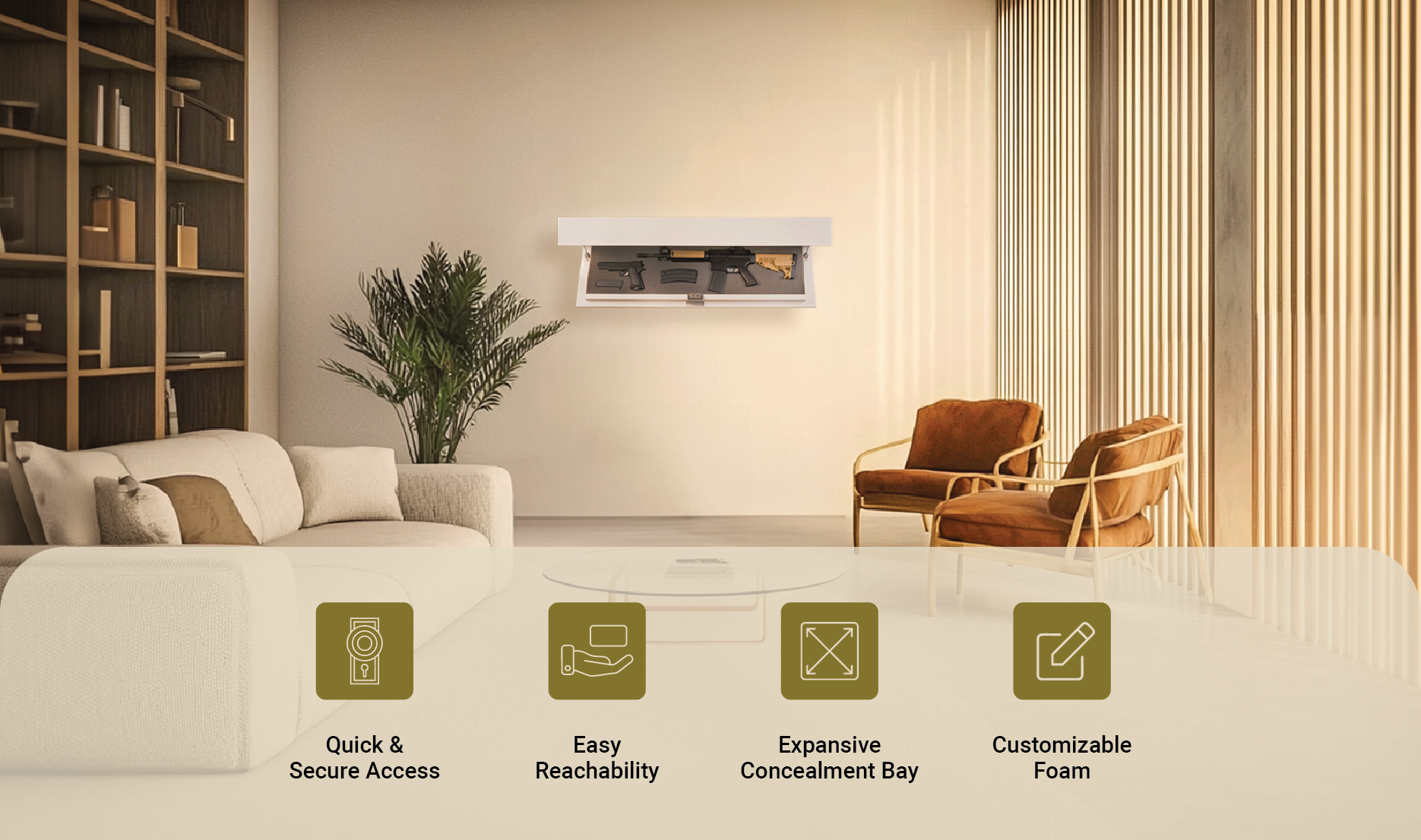 When crafting our concealment furniture, we emphasize safety, accessibility, discretion, customizability, and seamless design. This meticulous approach guarantees that your firearms and valuables are securely stored without sacrificing ease of use. Our solution goes beyond mere hidden gun storage furniture; it reflects careful attention to detail, combining functionality with elegant design to seamlessly integrate into your home.